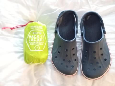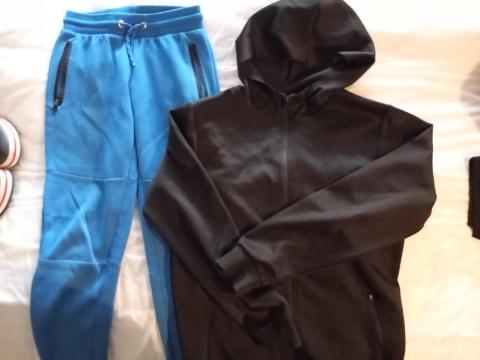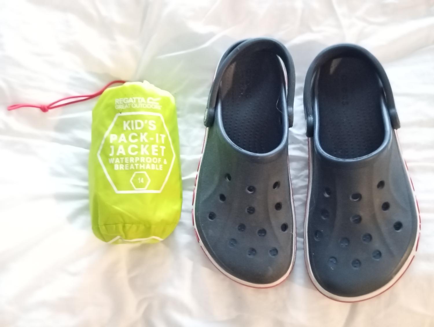 Truien mt 164, broek 152, regenjas 164, Crocs 39