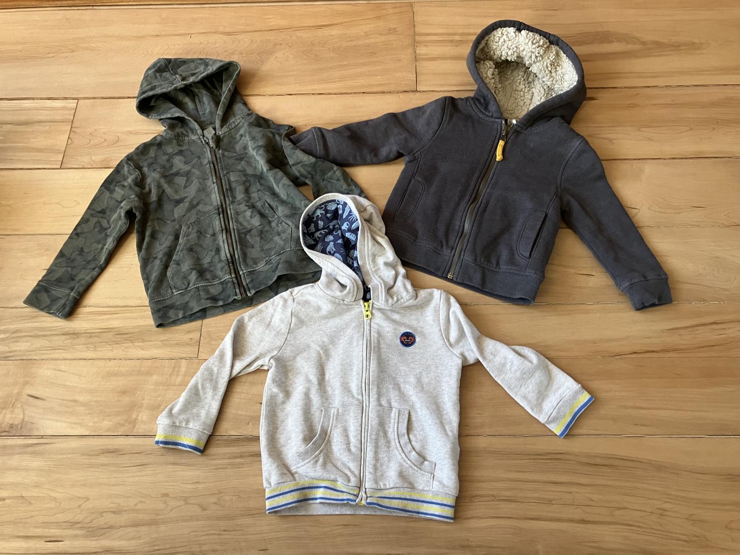 Alle kleding is gedragen, sommige meer dan de ander. Foto’s zijn gemaakt op volgorde van maat, dus de eerste foto’s zijn 86/92 en daarna 98