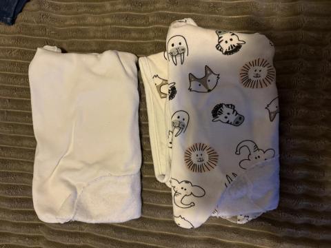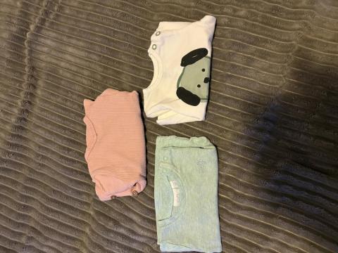 Pakket van rompertjes, boxpakjes, broekjes, shirtjes, mutsjes en twee inbakerdoeken voor een newborn. Maar 44/50. Uit een rookvrij huishouden alles gewassen met parfumvrij wasmiddel.